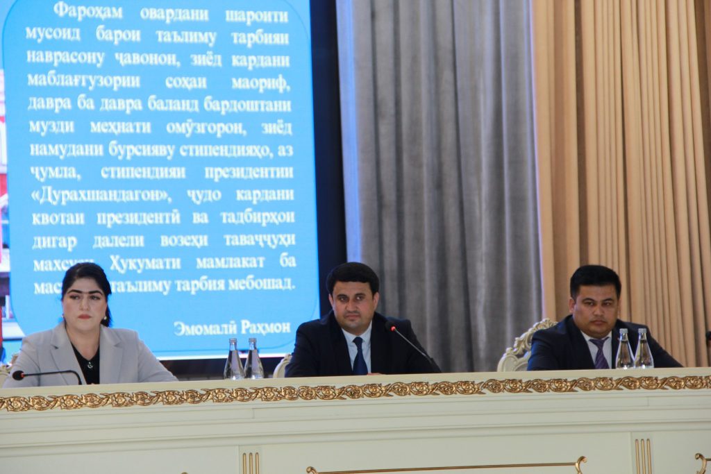«Президентская квота — это не только социальная поддержка, но и выражение высокого доверия государства к молодежи из отдалённых регионов и малообеспеченных семей. Вы — не просто обладатели привилегии, вы — носители большой ответственности. Ваш долг — оправдать это доверие через знания, поведение и любовь к Родине», — отметил Раджабзода.