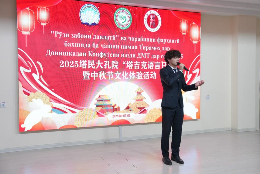 Бо ибтикори Донишкадаи таълимию фарҳангии Конфутсийи назди Донишгоҳи миллии Тоҷикистон бахшида ба Рӯзи забони давлатӣ ва ҷашни фарҳангии Иди чинии нимаи тирамоҳ чорабинии тантанавӣ баргузор гардид.