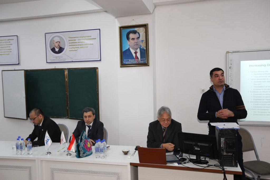 Дар доираи ҳамкориҳои судманд бо Дафтари Агентии Ҷопон оид ба ҳамкориҳои байналмилалӣ (JICA), дар асоси барномаи “JICA-Chair” дар факултети иқтисод ва идораи Донишгоҳи миллии Тоҷикистон дар самти табодули омӯзгорон нишасти илмӣ-назариявӣ баргузор гардид.