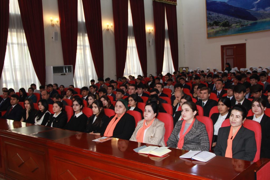 Бо ибтикори Раёсат ва бахши кор бо духтарон ва занони Донишгоҳи миллии Тоҷикистон дар якҷоягӣ бо Мақомоти иҷроияи ҳокимияти давлатии шаҳри Душанбе бахшида ба “Рӯзи мубориза алайҳи зӯроварии гендерӣ”, ки ҳамасола дар саросари кишварҳои ҷаҳон аз санаи 25 ноябр оғоз гардида, то 10 декабр идома меёбад, чорабинии фарҳангиро таҳти унвони “Оила бидуни зуроварӣ” дар толори калони Донишгоҳи миллӣ бо иштироки занону бонувон ва донишҷӯдухтарони фаъол чорабинии маърифатӣ баргузор гардид.