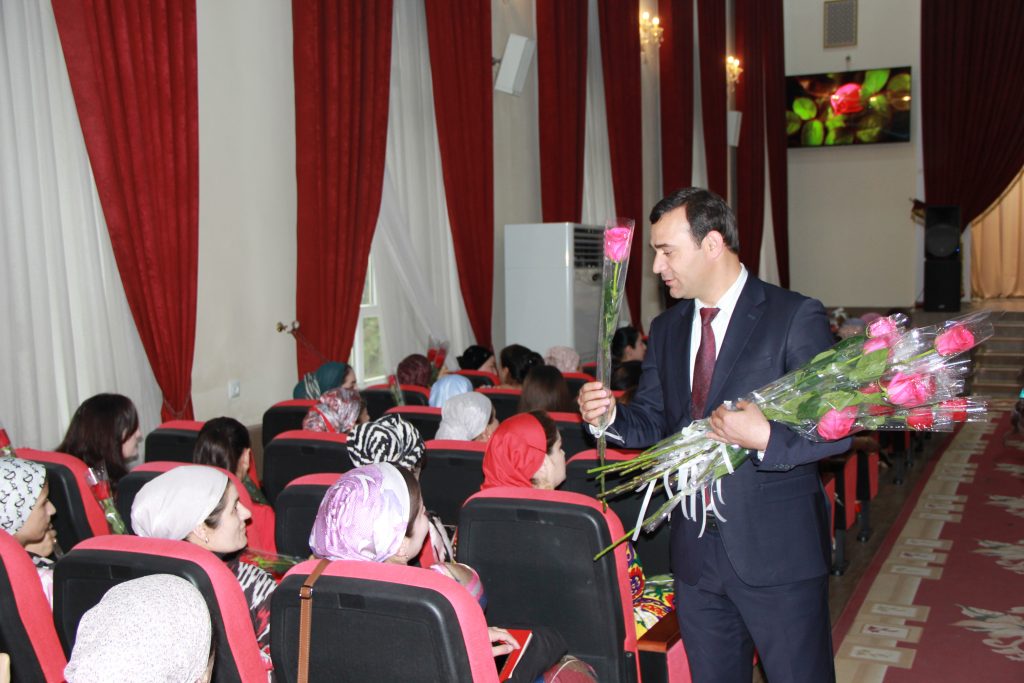 Дар идомаи чорабинии мазкур Одиназода Чаманоро – муовини раиси Кумитаи кор бо занон ва оилаи назди Ҳукумати Ҷумҳурии Тоҷикистон ва Бобомалаев Илҳом – устоди факултети филологияи Донишгоҳ суханронӣ намуда, бонувони кишвар ва дар симои онҳо устодону кормандони Донишгоҳро бахшида ба Рӯзи модар табрик намуданд.