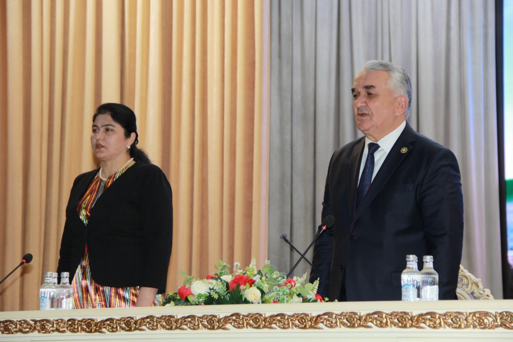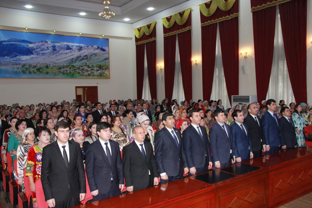 Чорабинӣ бо садо додани Суруди миллӣ ва сухани табрикотии ректори Донишгоҳ, профессор Насриддинзода Э.С. оғоз ёфт. Зимнан ректори Донишгоҳ аз дастгириҳои ҳамешагии Асосгузори сулҳу ваҳдати миллӣ-Пешвои миллат, Президенти Ҷумҳурии Тоҷикистон муҳтарам Эмомалӣ Раҳмон дар бораи мавқеи зан дар ҷомеа изҳори андеша намуд. Гуфта шуд, ки дар тамоми давраҳои таърихии миллатамон қадру қимати зани тоҷик ҳамеша баланд буд ва нақши онҳо дар инкишофи тамаддуни фарҳанги миллӣ басо бузург аст. Бо ташаббус ва ибтикори бевоситаи Президенти кишвар, муҳтарам Эмомалӣ Раҳмон як қатор тадбирҳои мушаххас, қабул кардани барномаи давлатӣ оид ба ҷо ба ҷо гузории кадрҳо аз ҳисоби занон, бунёди хобгоҳҳо барои донишҷӯдухтарон, ҷудо намудани гранти Президентӣ барои институтҳои ҷомеаи шаҳрвандӣ, қабули духтарон тибқи квотаи Президентӣ ба муассисаҳои олии касбӣ амалӣ шуда истодаанд.