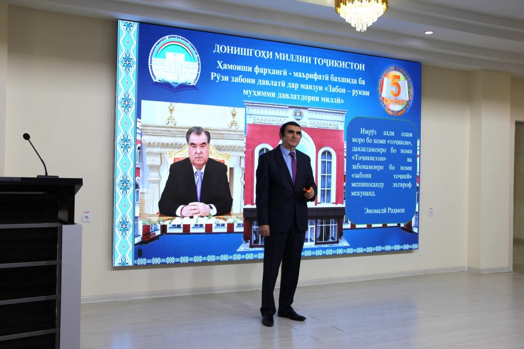Имрӯз (04.10.2025) дар Донишгоҳи миллии Тоҷикистон ҳамоиши фарҳангӣ-маърифатӣ бахшида ба Рӯзи забони давлатӣ дар мавзуи “Забон-рукни муҳимми давлатдории миллӣ” бахшида ба Рӯзи забони давлатӣ баргузор гардид.